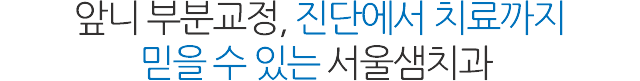서울샘치과의 앞니 부분교정은 환자의 상태에 따라 발치하지 않고 치간 삭제 기구를 이용해 치아 표면만 살짝 갈아서 치아 이동 공간을 확보하는 비발치교정이나 최소 발치 후 부분교정장치를 장착하는 방법을 맞춤 적용합니다.