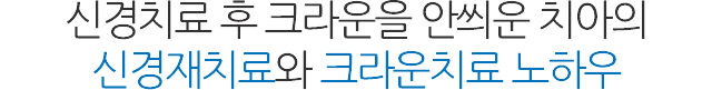 치아 속 신경관이 세균으로 오염되어 신경치료를 한 후에는 반드시 크라운 보철치료를 해서 치아 신경관이 다시 오염되지 않도록 밀폐해야 합니다. 그러나 간혹 신경치료 후 임시보철물 상태로 방치해서 2차 충치와 신경관 오염으로 재신경치료까지 받아야 하는 경우들이 있습니다.